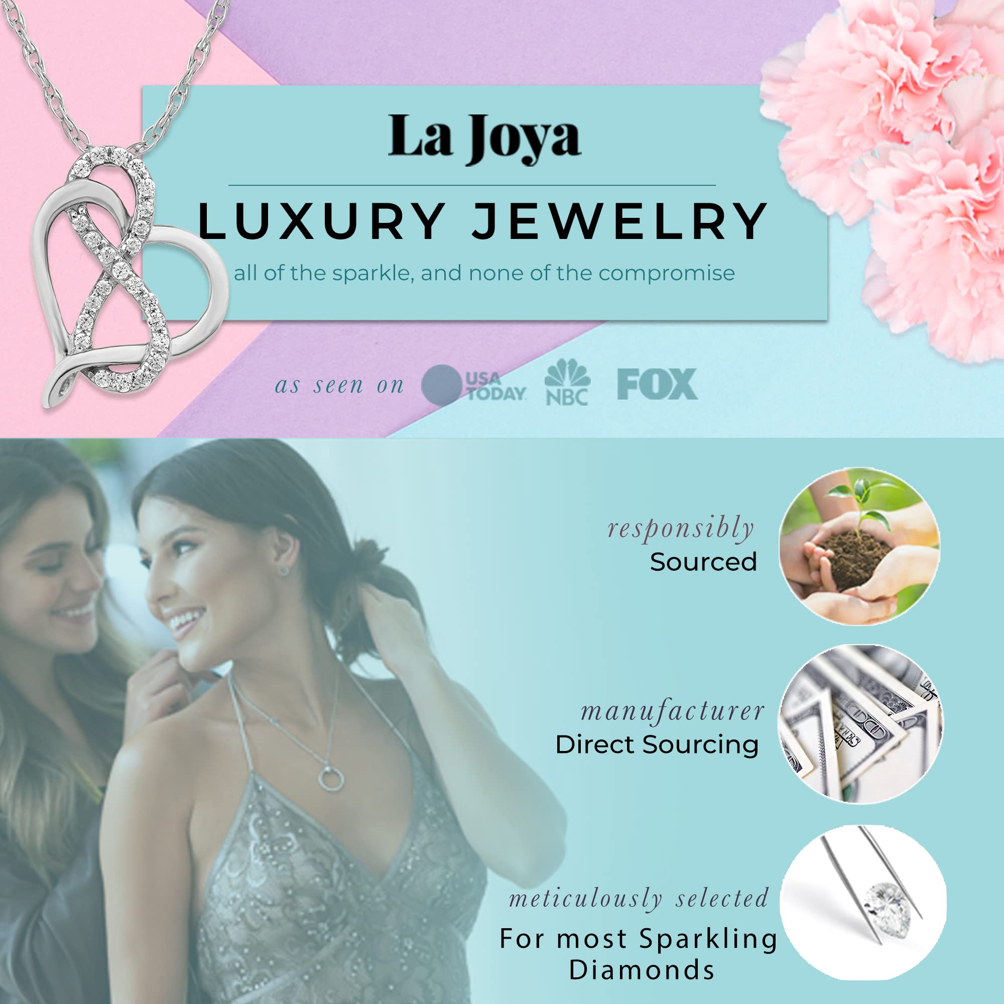 La Joya Diamond Heart Necklace for Women | 1/4-1 CT Lab Grown Diamond Heart Pendant Necklace | 14K White Gold Plated 925 Sterling Silver | Accompanied by an Adjustable 16-18" Silver Chain