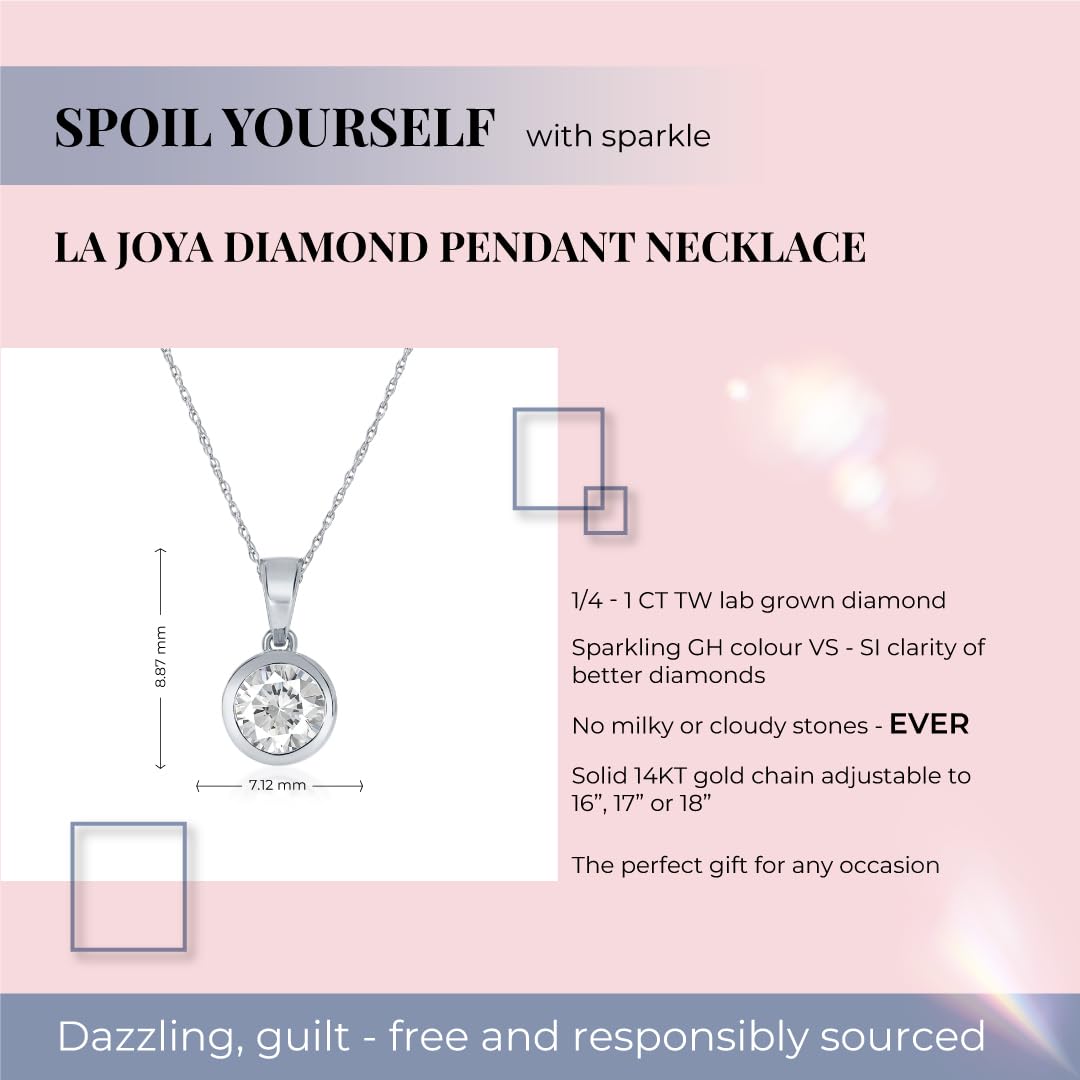 La Joya Lab Grown Bezel Diamond Necklaces for Women | 1/2-2 CT. TW. Floating Diamond Pendant Necklace | Premium GH Color VS SI Clarity Certified by Gemologist | 10K Solid Gold