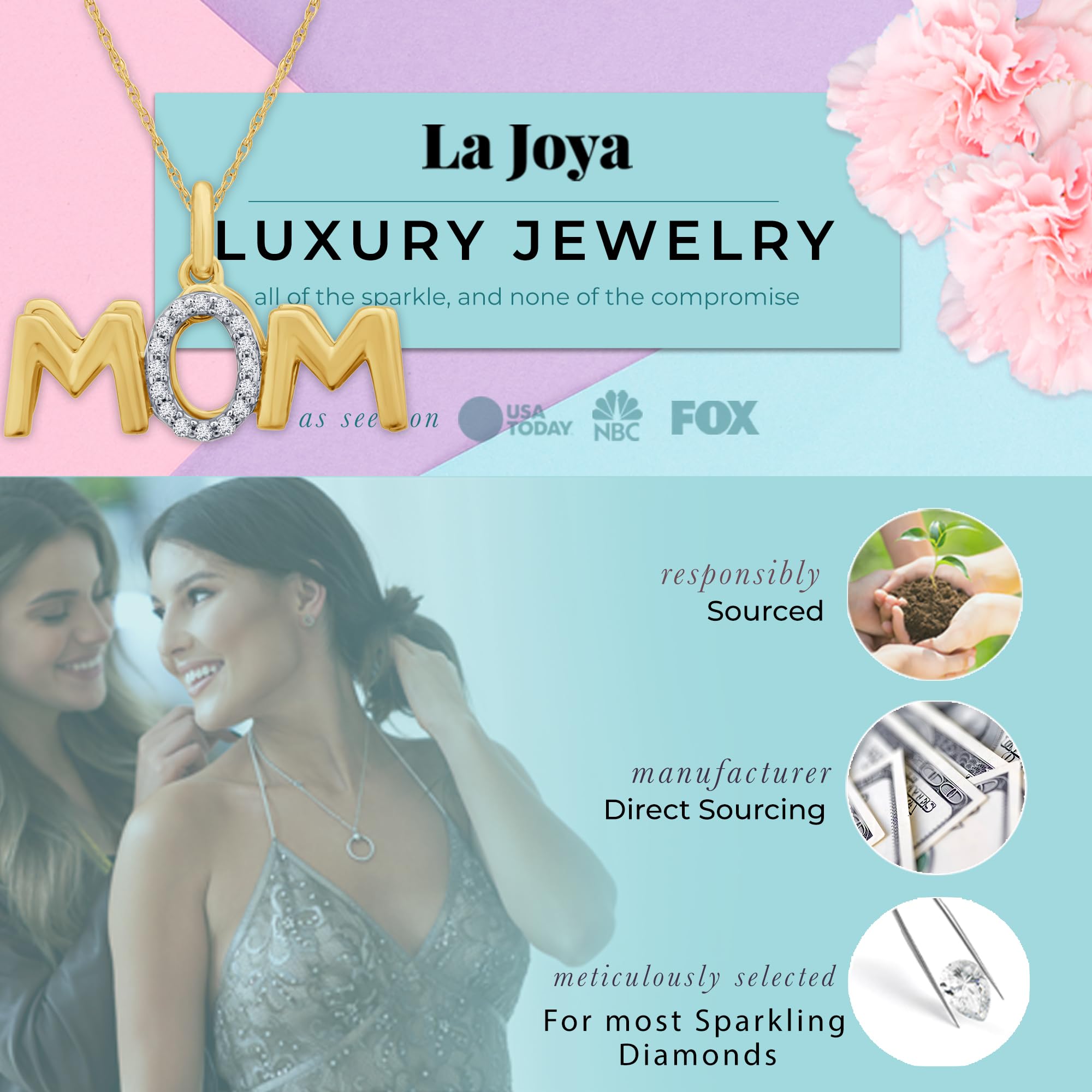 La Joya Stunning Jewelry for Mom | Lab Grown Diamond Pendant Necklace in 925 Sterling Silver | Ideal Gift for Mothers