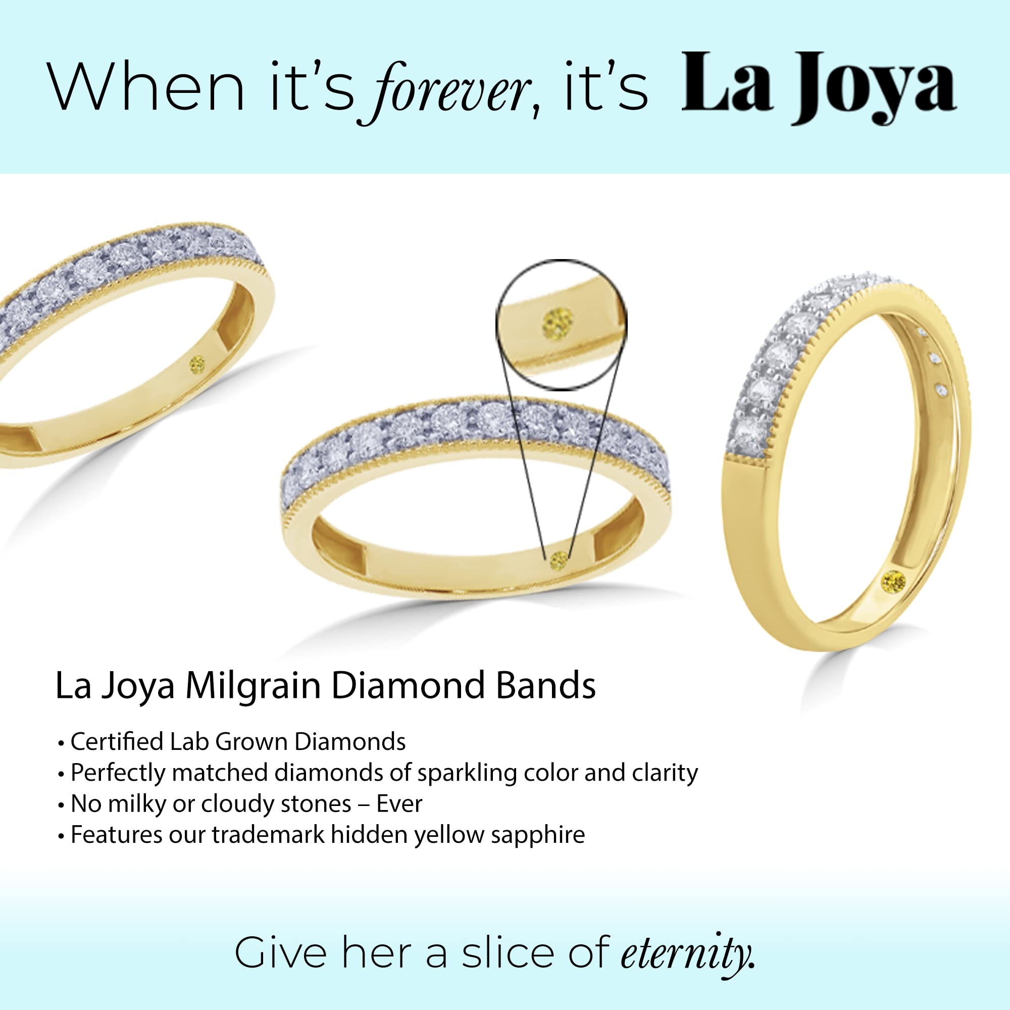- Includes Color, Clarity, & Size Certification by Independent Laboratories: Your stackable half eternity ring is authenticated by gemologists and accompanied by an online verifiable certificate.