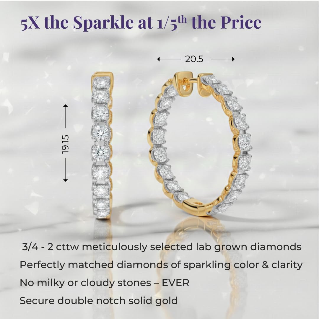 - 360° Inside-Out Brilliance: Your lab grown diamond hoops are expertly hand set to capture light from every angle and features a secure 3K solid gold closure for daily durability and comfort